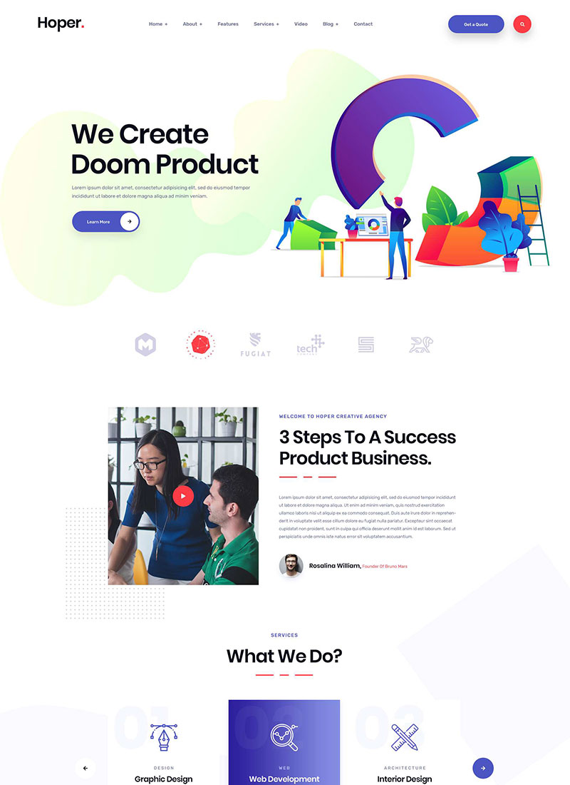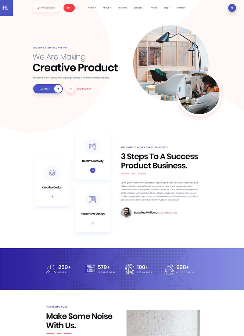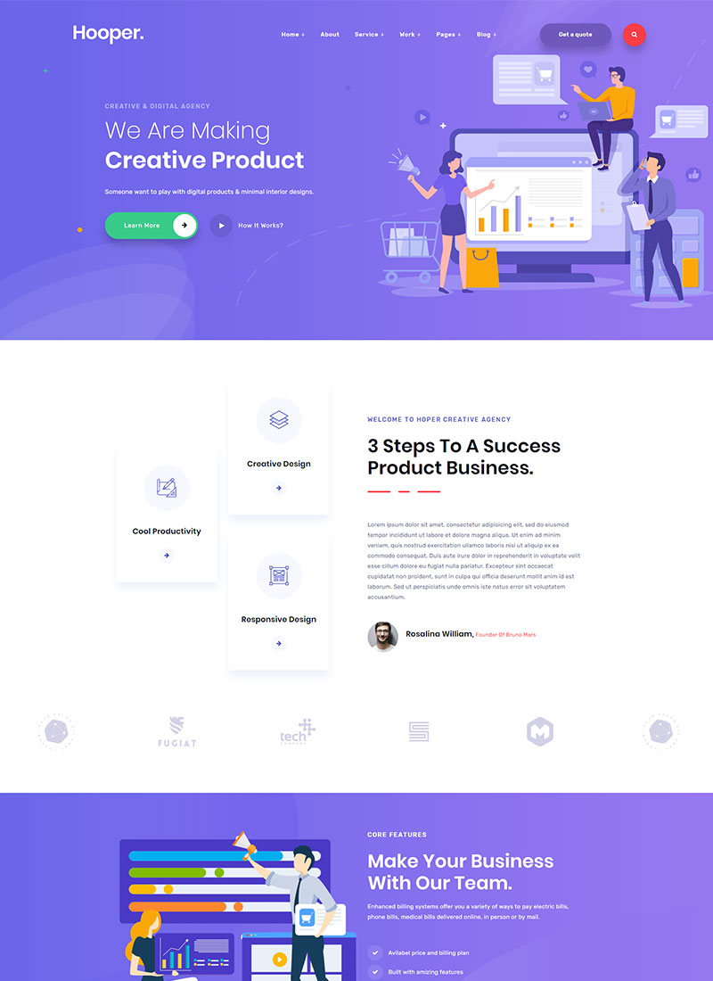 Hooper is an HTML5 template developed for Agencies, Startup and SaaS projects, digital marketing,creative portfolio. Using and customizing the template is quite simple.