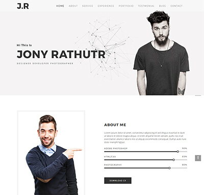 JR RESUME is an ultra-responsive html5 template. It works perfectly on all devices, and looks pretty in every device likes desktop, laptop, tablet and mobile.