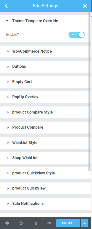 Now go back and access the ShopReady General & Popup option and enable the Theme Template Override.