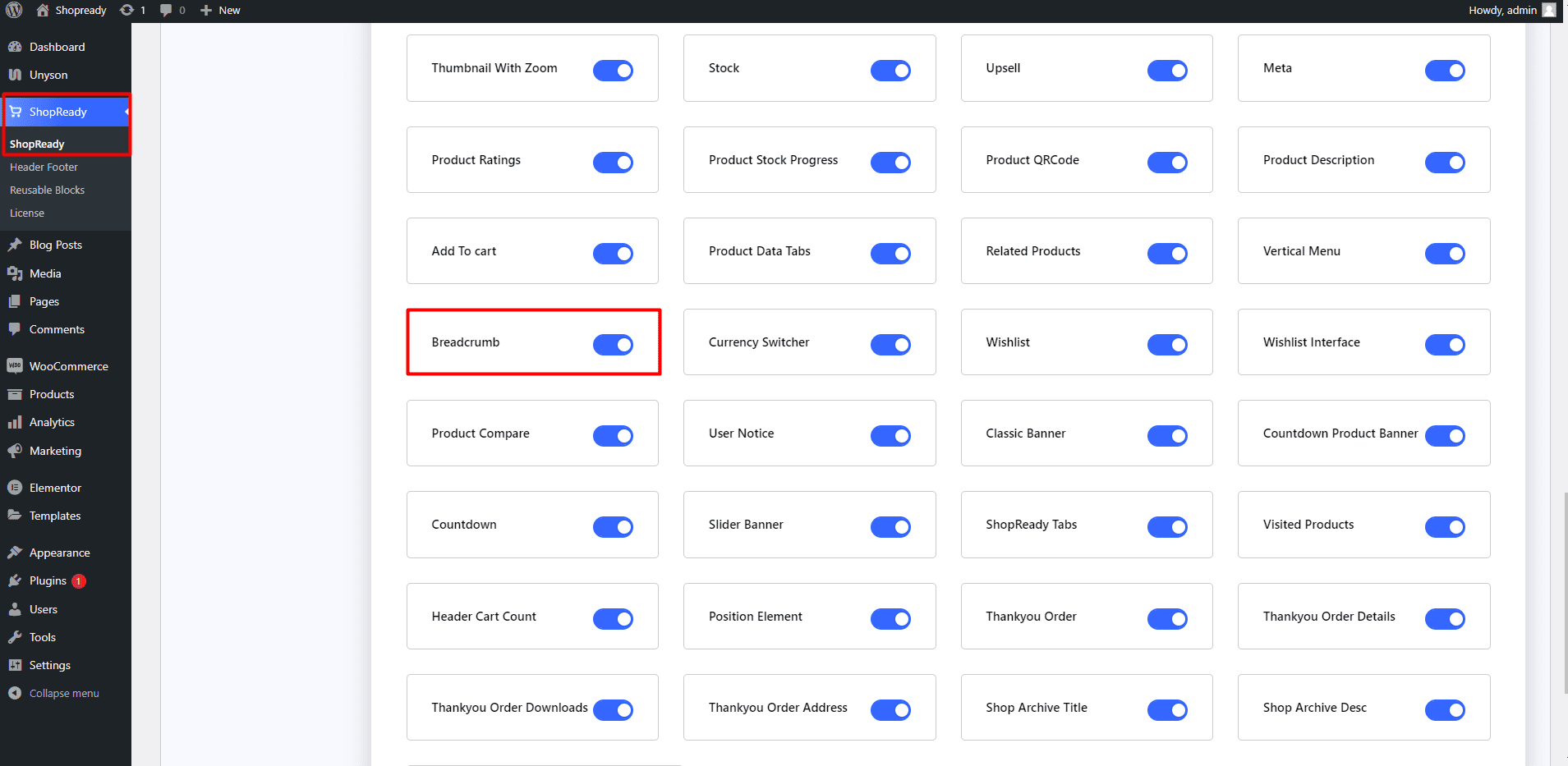 Enable the Breadcrumb widget from the ShopReady dashboard and click on Save Changes.