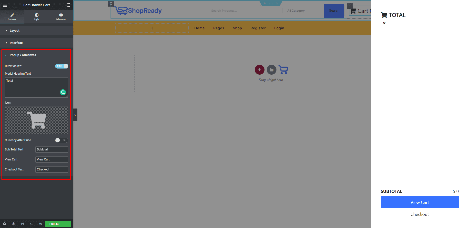 Enable the Drawer Cart widget from the ShopReady dashboard and click on Save Changes.