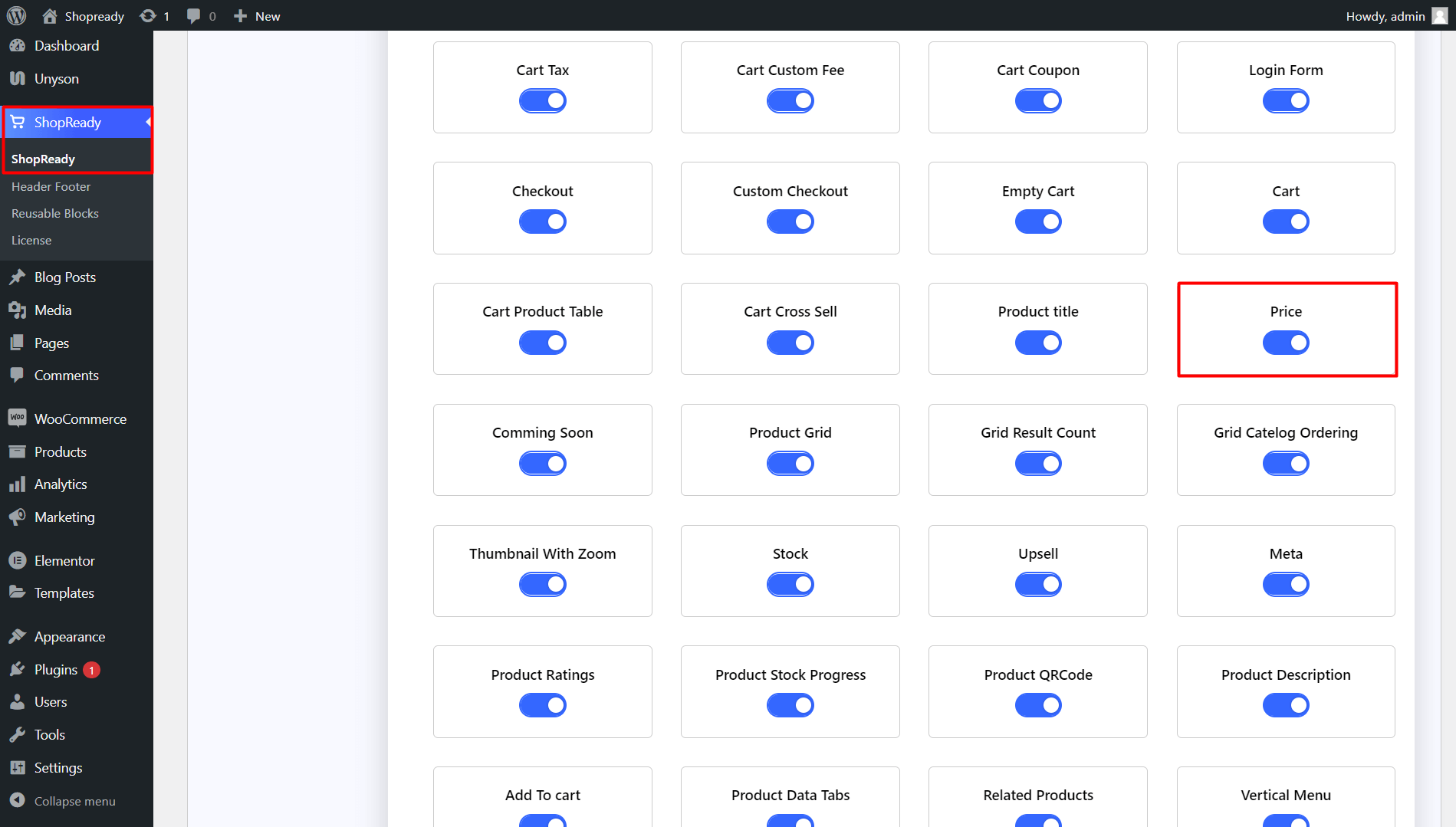 Enable the Price widget from the ShopReady dashboard and click on Save Changes.