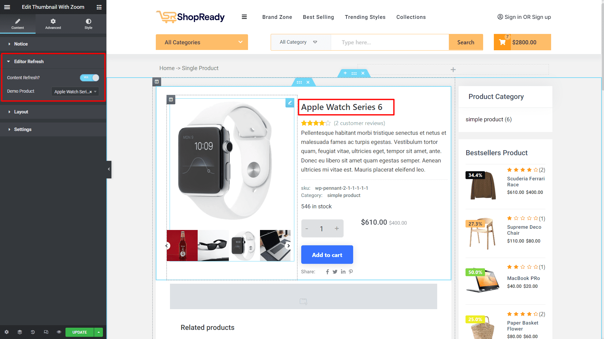When you’re done customizing your related products section, make sure to hit PUBLISH / UPDATE to save your changes.