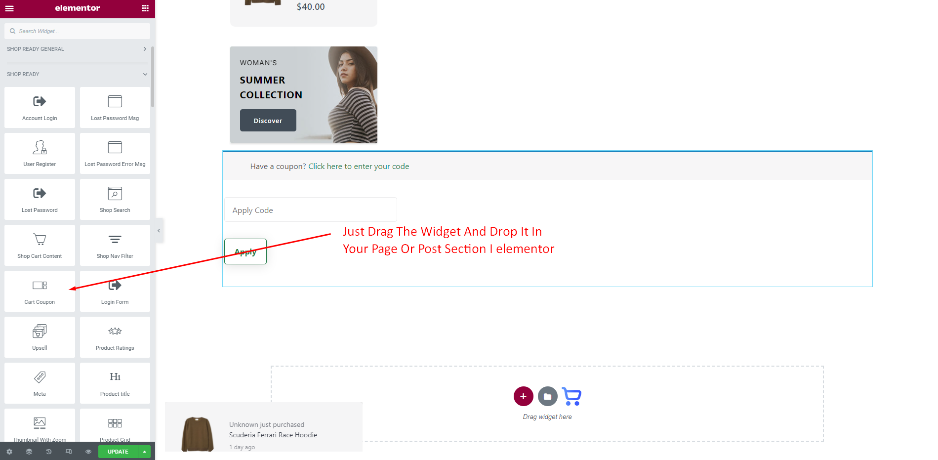 We just need idea about basic Elementor Widgets and how it works. As we all know this is a DRAG and DROP process. Just select the Widget from Elementor Dashboard and Drag it to your desire column or place. Now we will show you How to edit and customize the ShopReady Widgets.