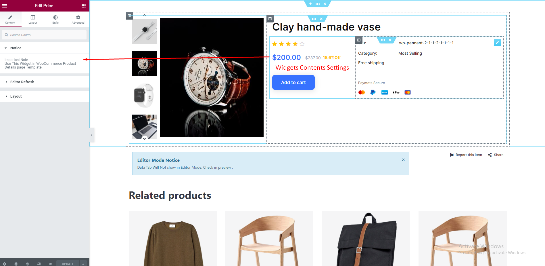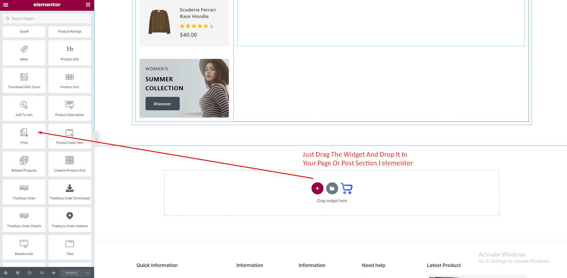 To set Price Widget We just need idea about basic Elementor Widgets and how it works. As we all know this is a DRAG and DROP process. Just select the Widget from Elementor Dashboard and Drag it to your desire column or place. Now we will show you How to edit and customize the ShopReady Widgets.