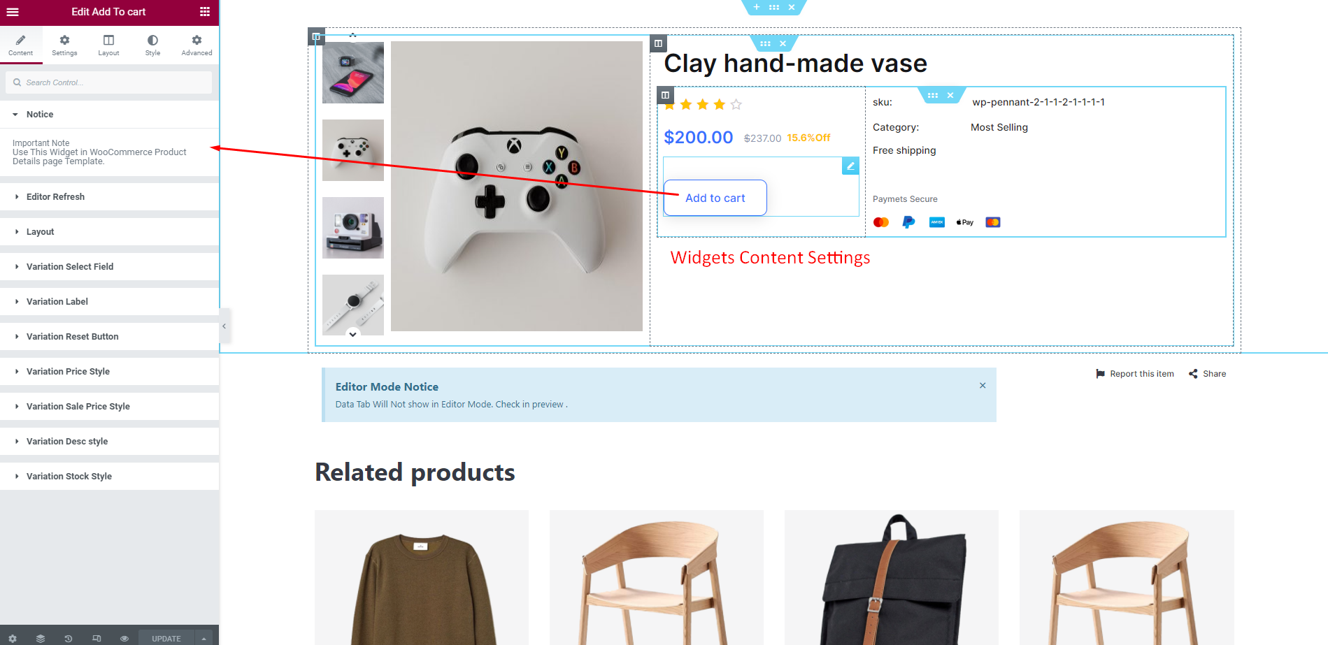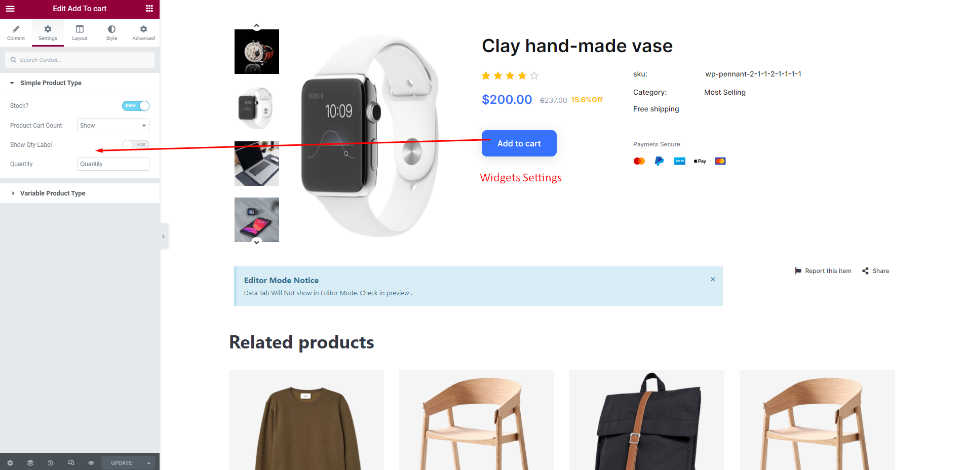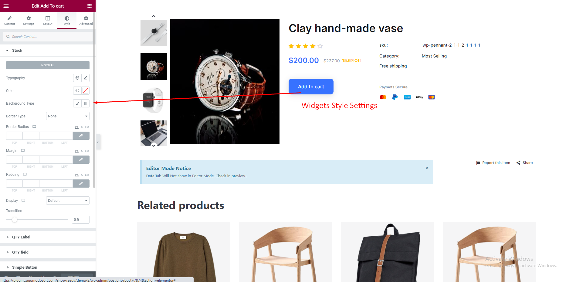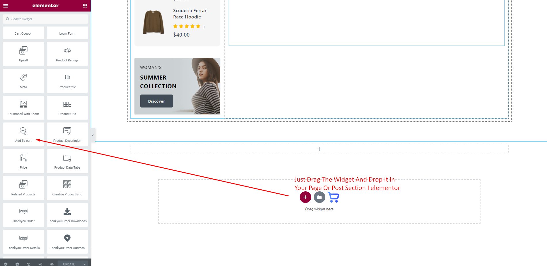 To set Add to Cart Widget We just need idea about basic Elementor Widgets and how it works. As we all know this is a DRAG and DROP process. Just select the Widget from Elementor Dashboard and Drag it to your desire column or place. Now we will show you How to edit and customize the ShopReady Widgets.