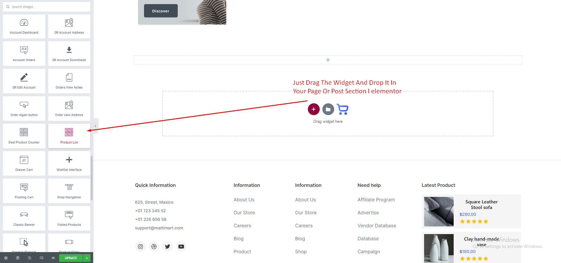 We just need idea about basic Elementor Widgets and how it works. As we all know this is a DRAG and DROP process. Just select the Widget from Elementor Dashboard and Drag it to your desire column or place. Now we will show you How to edit and customize the ShopReady Widgets.