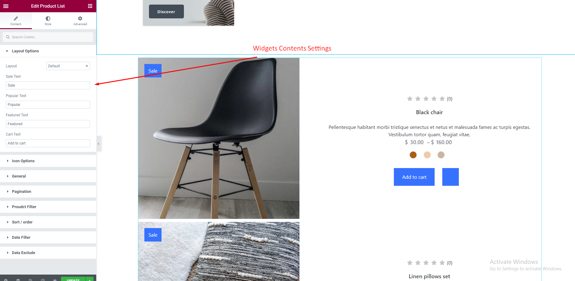 To set Product List Widget