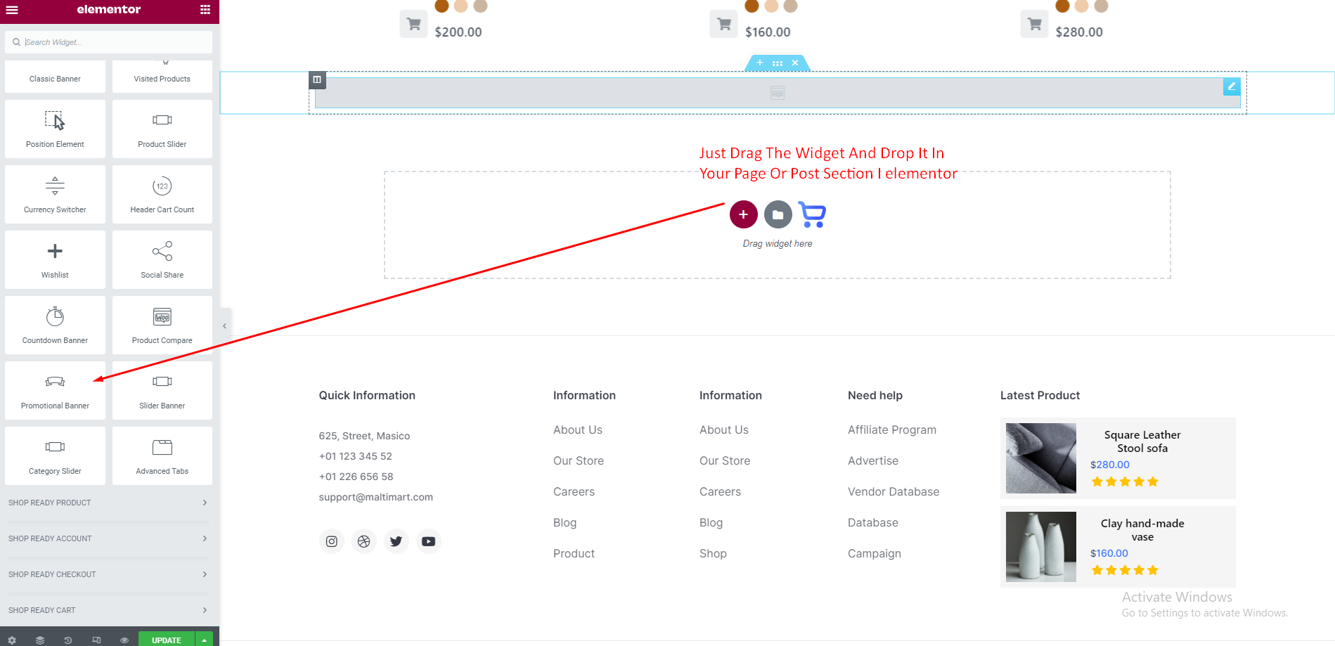 We just need idea about basic Elementor Widgets and how it works. As we all know this is a DRAG and DROP process. Just select the Widget from Elementor Dashboard and Drag it to your desire column or place. Now we will show you How to edit and customize the ShopReady Widgets.