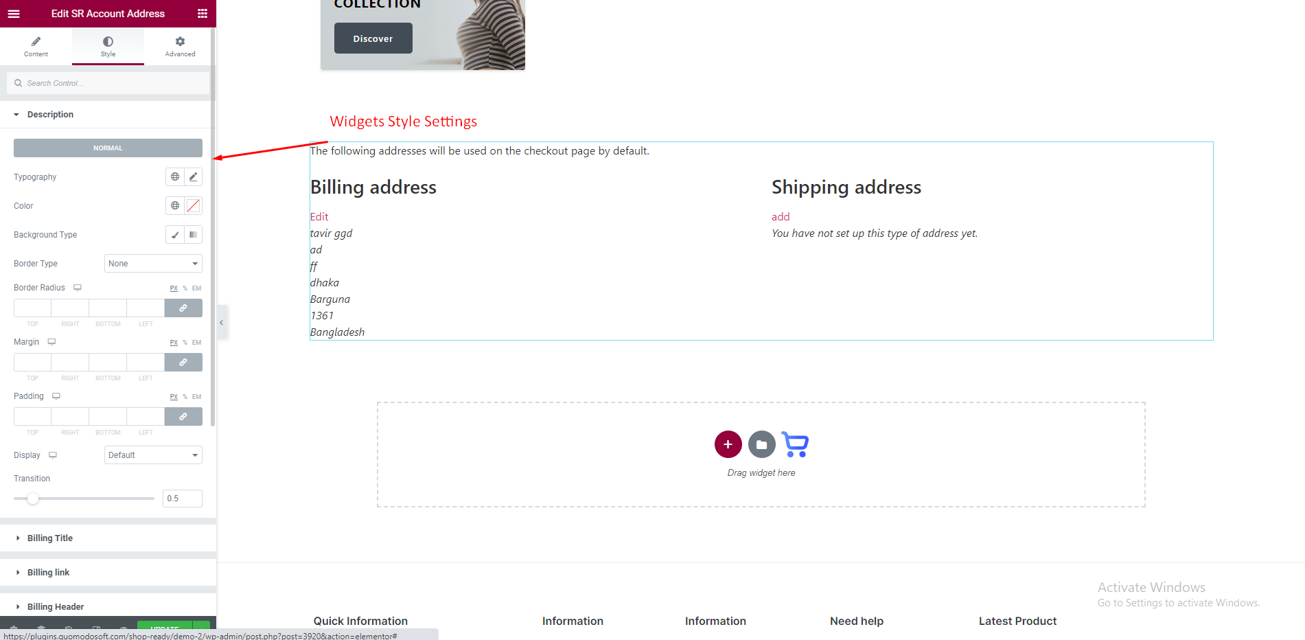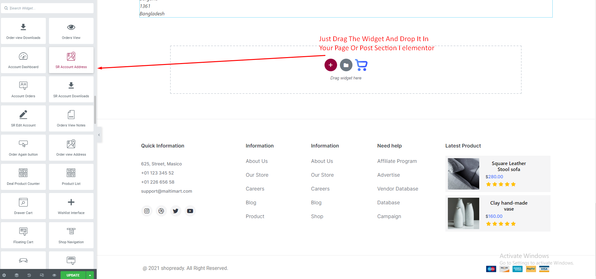 We just need idea about basic Elementor Widgets and how it works. As we all know this is a DRAG and DROP process. Just select the Widget from Elementor Dashboard and Drag it to your desire column or place. Now we will show you How to edit and customize the ShopReady Widgets.