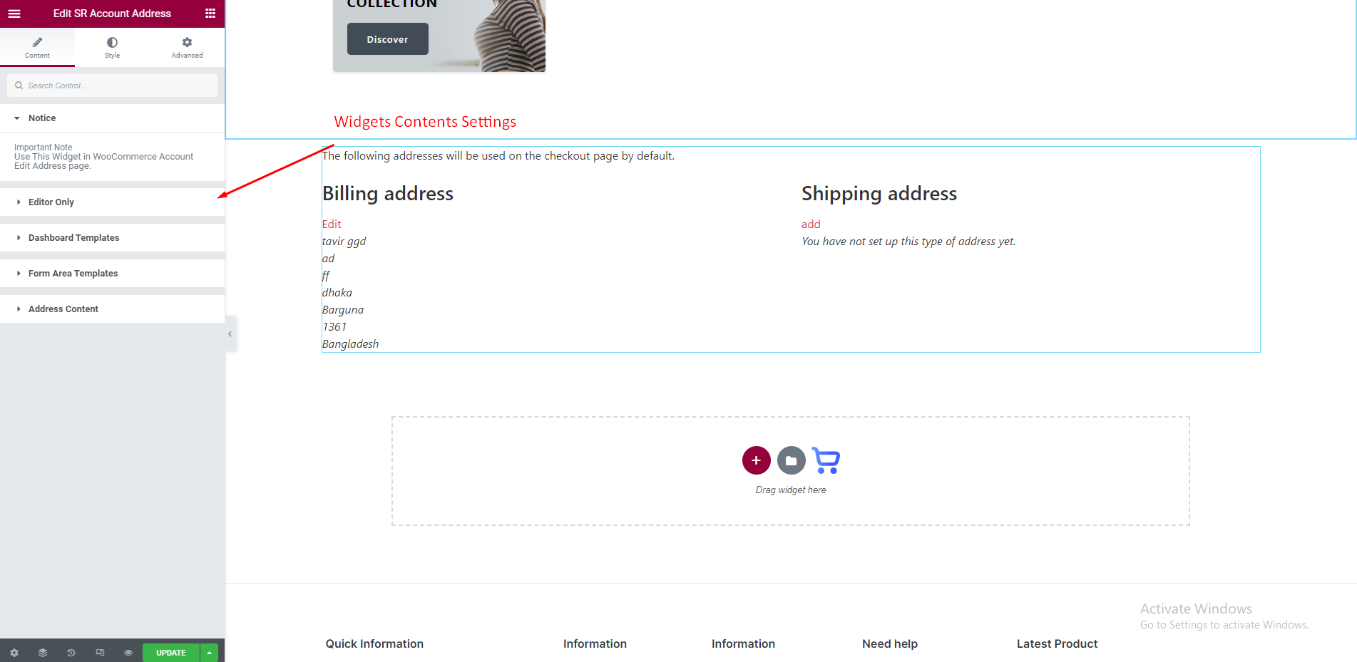To set SR Account Address Widget