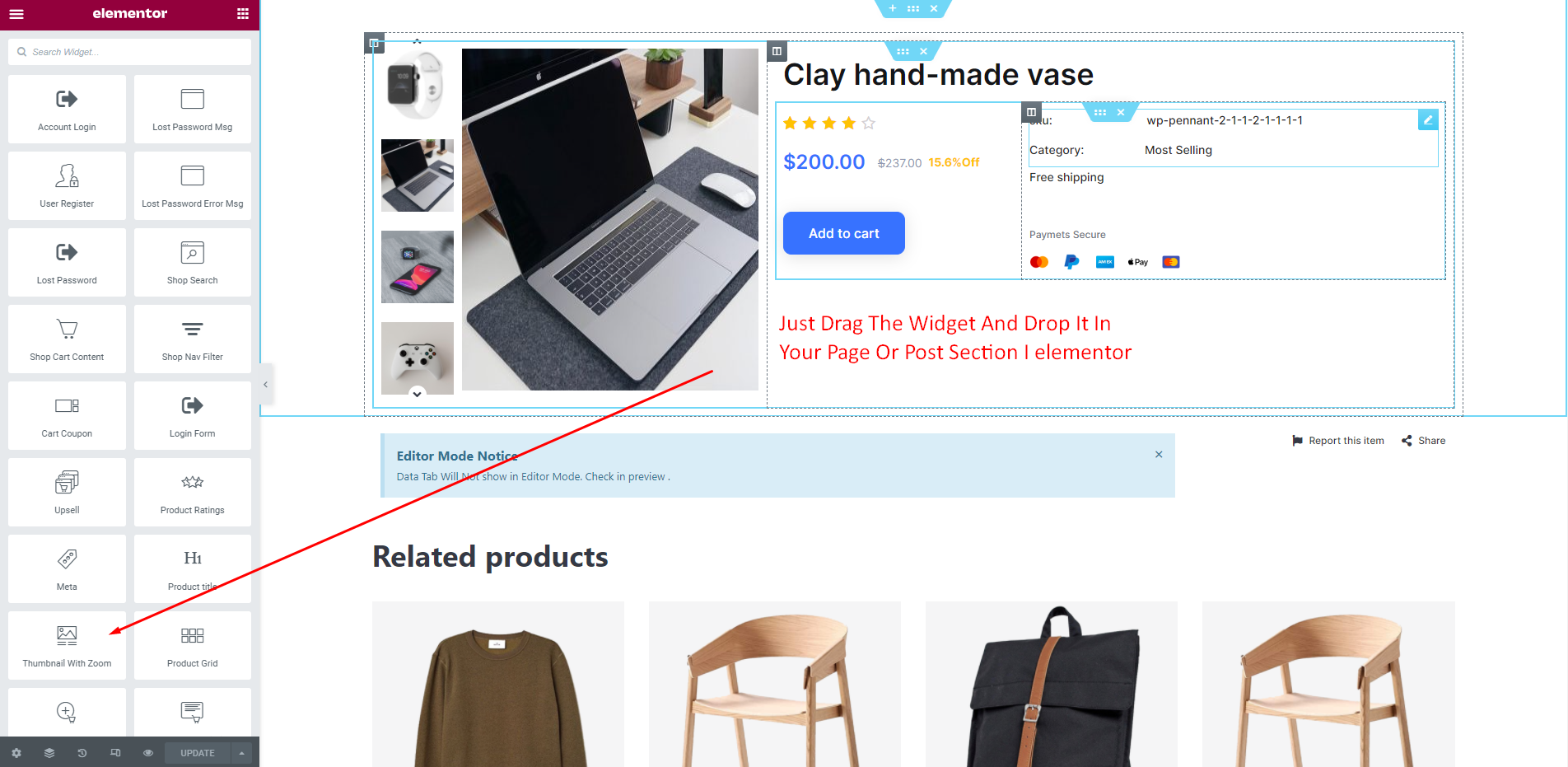 We just need idea about basic Elementor Widgets and how it works. As we all know this is a DRAG and DROP process. Just select the Widget from Elementor Dashboard and Drag it to your desire column or place. Now we will show you How to edit and customize the ShopReady Widgets.