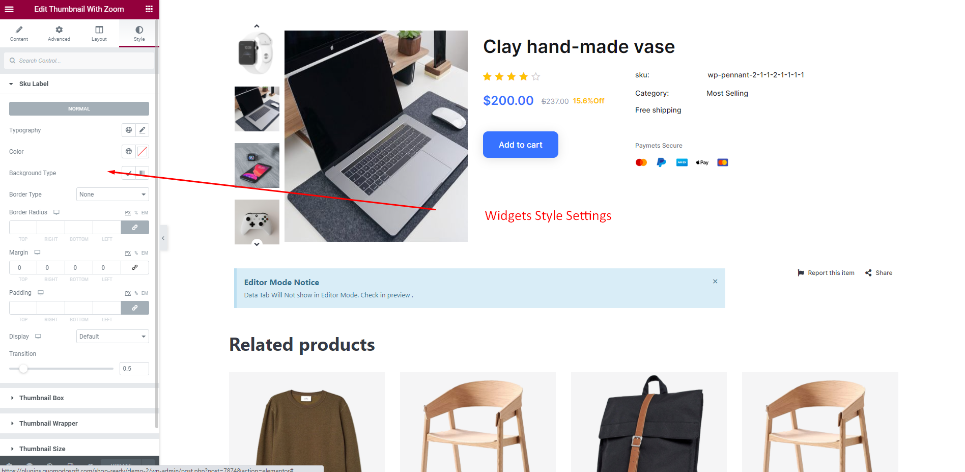 To set Thumbnail With Zoom Widget