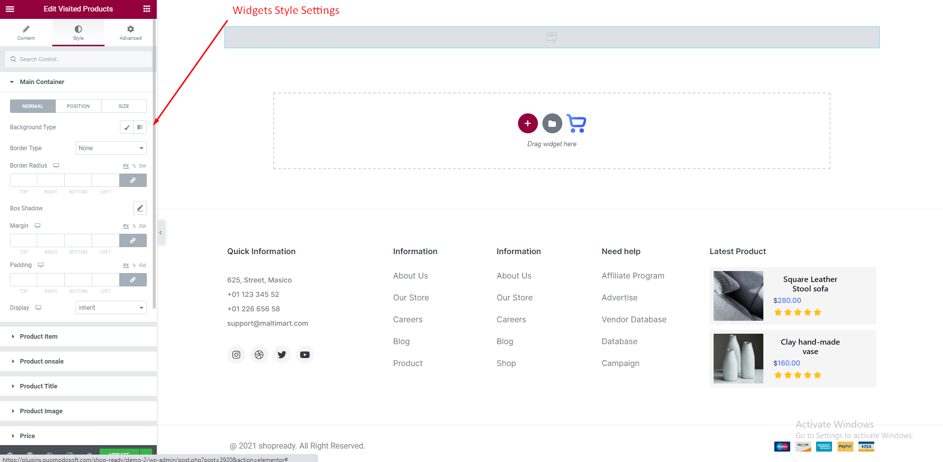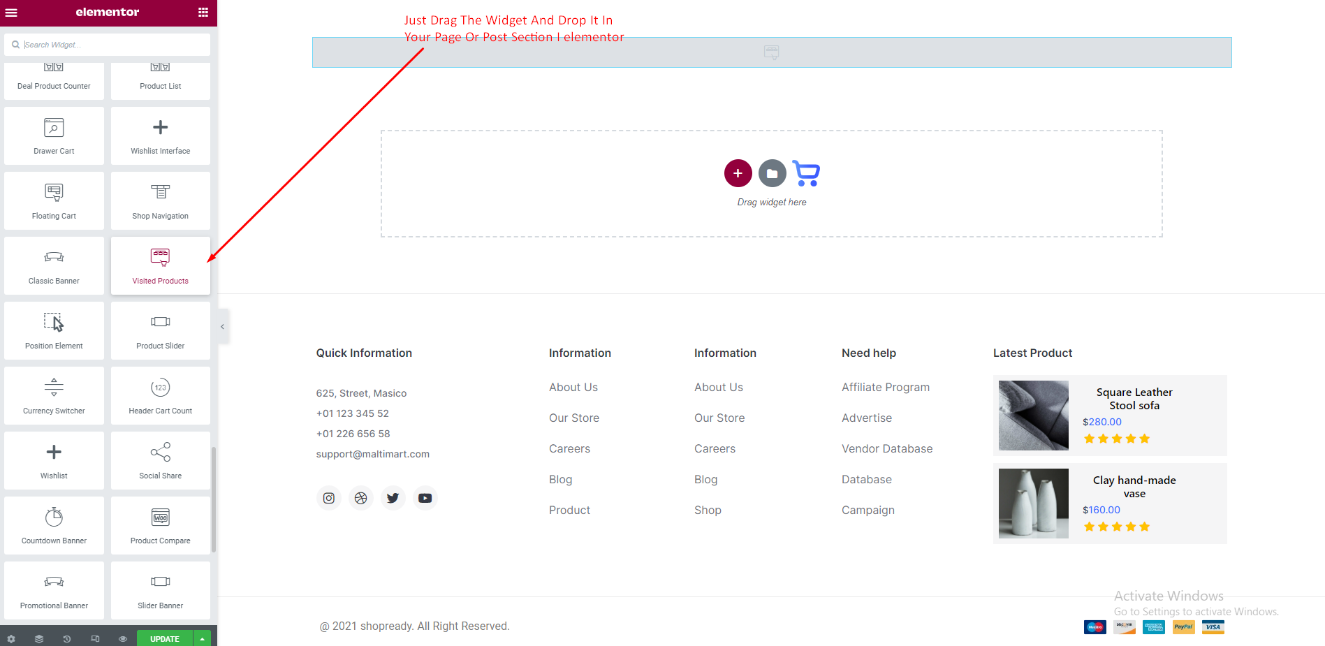 We just need idea about basic Elementor Widgets and how it works. As we all know this is a DRAG and DROP process. Just select the Widget from Elementor Dashboard and Drag it to your desire column or place. Now we will show you How to edit and customize the ShopReady Widgets.