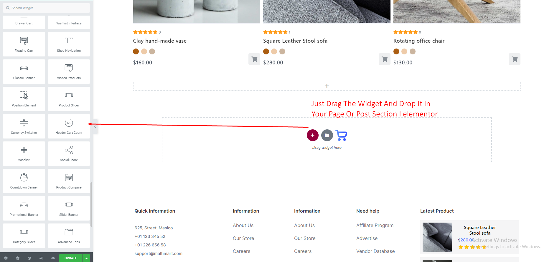 We just need idea about basic Elementor Widgets and how it works. As we all know this is a DRAG and DROP process. Just select the Widget from Elementor Dashboard and Drag it to your desire column or place. Now we will show you How to edit and customize the ShopReady Widgets.